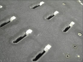 - Through specially design and manufacturing process, the solder thief can be installed on wave pallet to reduce 50~80% short bridging from normal wave processing.